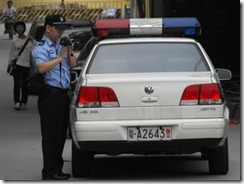2010年5月2日上午,广州良人家庭教会因聚会场所被封,被迫在大门外举行首次户外敬拜。广州公安指使广东建筑机械厂(房东方)用铁链锁上聚会场所大门并加上封条,会友被阻挡在大门外不得进入,被迫在大门外举行首次户外敬拜。广州良人家庭教会表示:为了不给房东造成困扰,我们决定下周日在广州人民公园举行主日崇拜。地点:地铁公园前出站。良人家庭教会感谢神的恩典,决意把这次被迫行动当作户外公开布道的操练。教会呼吁广州当局能尊重公民的信仰自由,希望当局能许可他们享有在自己合法租用的房屋内聚会的权利。若是这个小小的要求都得不到满足,教会只好继续在人民公园里举行每周日的户外敬拜。图1:警察追踪摄影