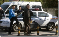 图片来源: AP 北京便衣警察在监视计划举行复活节弥撒的地下教会信徒