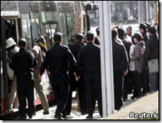 在北京的基督教地下教会“守望教会”表示,尽管受到当局的打压,教会将继续坚持户外聚会。上周日(4月10日),守望教会在北京中关村附近的一广场举行户外敬拜。据该教会周二(12日)发表的声明称,参加敬拜的有200多人,160多人被警方送到附近的彩和坊小学讯问。(图片:守望教会成员上周日举行户外崇拜时被警方带走)