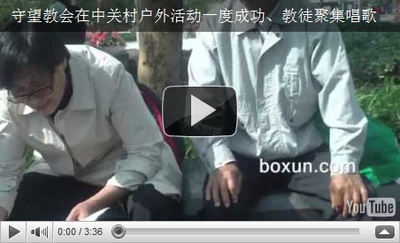 今天是守望教会在中关村中钢大厦前广场平台的第四次户外活动,早八点半博讯义工看见在平台上有20余名穿戴整齐的教徒,在平台上集体朗诵什么。约7、8名警察在驱赶他们,博讯义工见此赶紧下车。到广场内看见这20多教徒在大平台旁继续列队朗诵什么,在他们边上有三女一男和一个小孩在唱基督的赞歌,他们还拿一张打印好的《5月8日守望教会户外活动程序》。他们都很虔诚的祷告,唱赞歌。不知道今天北京警方是采取“欲擒故纵”方式?还是警力不到位,暂不下手抓人?在连续几周的严厉打压后,9点左右中关村广场大平台有基督徒在活动,祷告,唱歌,博讯义工有视频、照片为证。