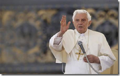图片说明:教皇本笃十六世,在五月十八号,梵蒂冈, 圣 .彼得广场,带领每周的祝福。(摄影,路透社/亚历山的鲁. 拜恩契Alessandro Bianchi)