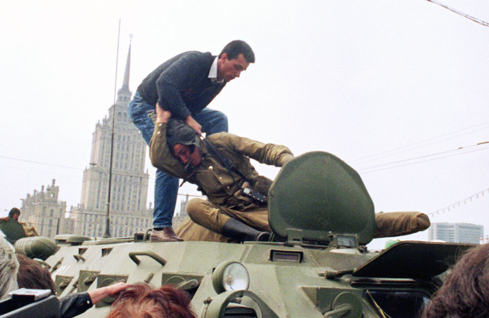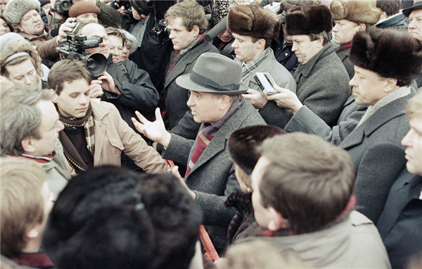导语:每年的这个时候,世界的大部分地方都被圣诞老人占领了,充斥我们眼睛和耳朵的都是有关圣诞节的消息。然而23年前的这一天,占领世界新闻头条的不是圣诞节,而是另一件影响了世界历史进程的重大事件——这一天,米哈伊尔·戈尔巴乔夫辞去了苏联总统一职,宣布解散苏联政府,存续了近70年的美丽乌托邦完成了它最后的谢幕仪式。没有战争,没有革命,这一谢幕看起来令人难以置信的平静。这里收集的是20多年前有关苏联谢幕的部分照片,仅仅依靠这些碎片化叙述很难解释苏联解体的具体原因,但也许透过这些,我们会隐隐发现,苏联的谢幕不过是一段早就注定的骚乱岁月的必然结果。今日俄罗斯,有对普京强权式的支持和崇拜,也有质疑他现行的政策放开了对极端民族主义的束缚,将引发一场灾难(福山语)。在这里,我们无意作具体评价,回顾苏联帝国崩溃的过程和瞬间,感叹其何去何从之时,或许也可反观自照。