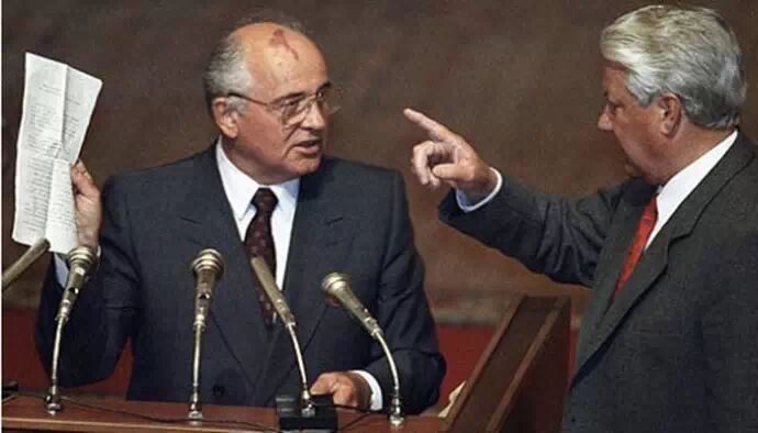 ▲1991年11月,叶利钦开始冷淡对待戈尔巴乔夫,强调他越来越凌驾于后者之上。