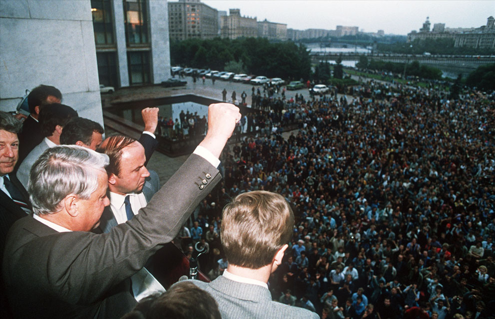 八月政变虽然平息了,但戈尔巴乔夫的权势却被严重的削弱了,与此相反,叶利钦的声望得到了极大的提高。1991年8月24日,戈尔巴乔夫正视了“共产党完了”这个事实,辞去苏联共产党第六任也是最后一任总书记职务。在政变期间及随后的短暂时间内,爱沙尼亚、拉脱维亚、乌克兰等加盟共和国先后独立。1991年12月8日,俄罗斯总统鲍里斯·叶利钦、乌克兰总统列昂尼德·克拉夫丘克和白俄罗斯总统斯坦尼斯拉夫·舒什克维奇撇开戈尔巴乔夫签署了别洛韦日协议,提出以独联体取代苏联。1991年12月16日,哈萨克斯坦宣布独立,到此时,除了俄罗斯外,其他加盟国已经全部独立了。12月21日,叶利钦和十五个创始国中其他十个共和国的国家元首签署协议正式成立了独联体。苏联名存实亡。