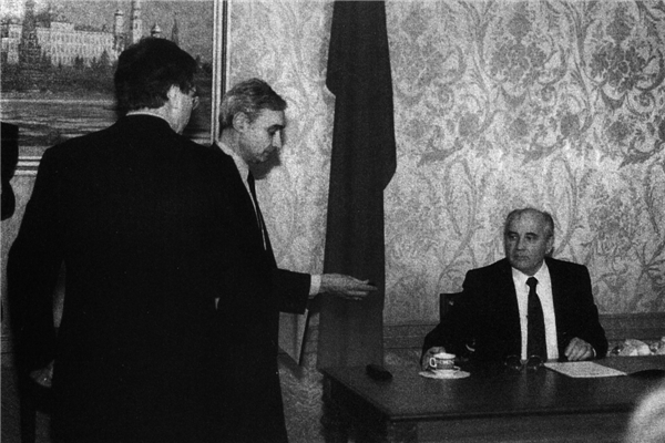 ▲帕维尔·帕拉兹琴科在戈尔巴乔夫和布什总统通话时做翻译—布什总统不知道ABC的泰德·科佩尔正在旁听。