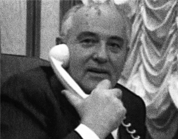 ▲“圣诞快乐,亲爱的乔治!”米哈伊尔·戈尔巴乔夫在辞职几分钟前致电布什总统,满怀感情地说再见。