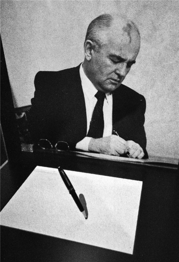 ▲戈尔巴乔夫在演讲前而不是演讲后签署辞职文件,让电视台工作人员措手不及。