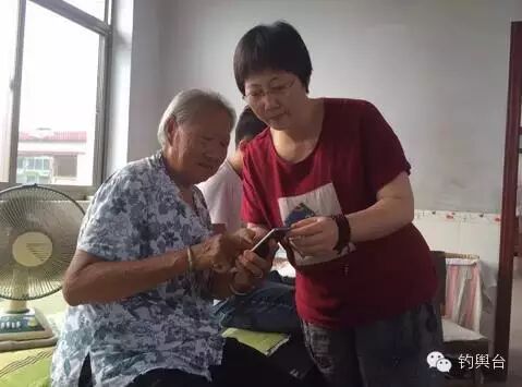 (孟群给大个子年迈的老母亲看手机,里面有以前拍摄的全家照片)