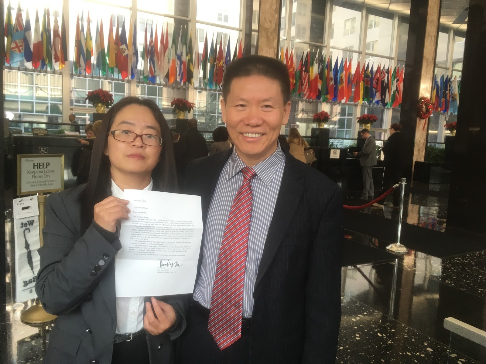 当天早上傅希秋牧师在美国之音卫视接受有关中国人权与美国新总统政策的访谈。上午10点,傅牧师带着江天勇太太金变玲和香港铜锣湾书店前经理作家胡志伟在国务院跟来自三个不同司局的官员见面,就江天勇律师被失踪和香港铜锣湾书店多人被绑架事件提出意见和建议。
