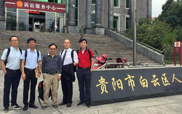 | 苏天富牧师(中)和代理律师在贵阳市白云区法院外合影 |