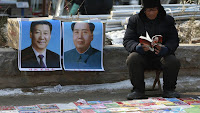 | 商贩出售习近平和毛泽东像 Photo: REUTERS/Stringer (2015年1月30日山东高平 |
