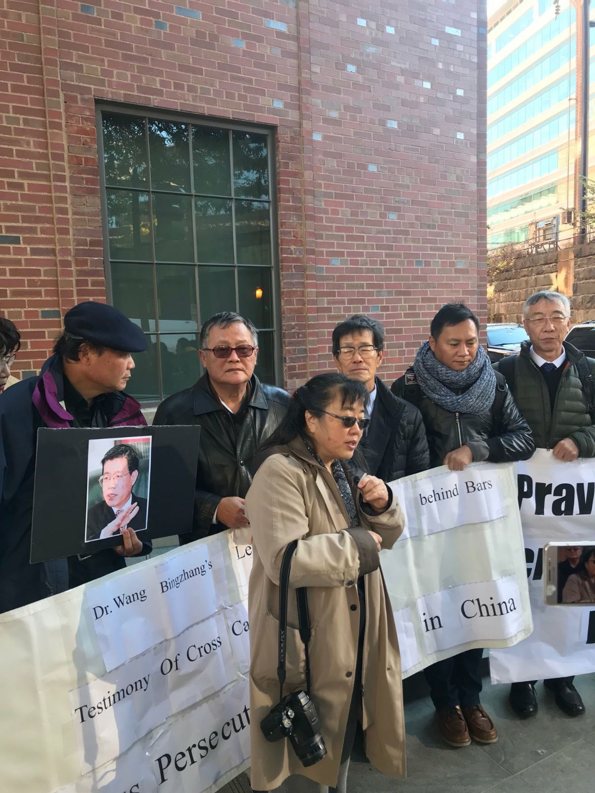 | 海外人士齐聚圣经博物馆门外 要求中国释放王炳章博士 (图:网络) |