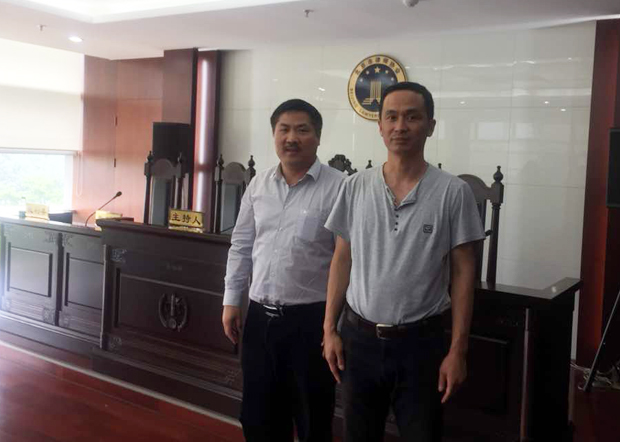 | 湖南律师文东海(左)参加谢燕益(右)的吊照听证会 (图:吴亦桐提供,2018年5月16日) |