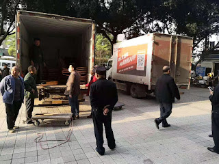 | 民宗局和警察等部门人员正在搬走橄榄山教会的教产 (照片2:来自微信) |
