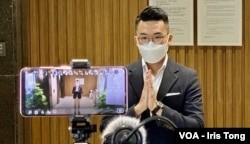 | 南区区议员彭卓棋进入法庭前向传媒致意 (美国之音/汤惠芸) |