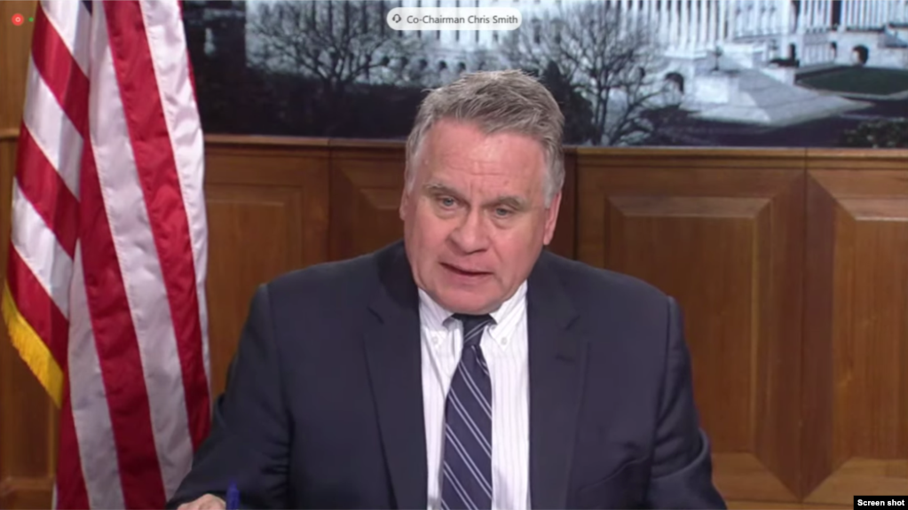 | 汤姆.兰托斯人权委员共同主席、共和党联邦众议员史密斯(Rep. Chris Smith, R-NJ)2021年5月18日主持听证会,聚焦中国新疆人权问题。 |