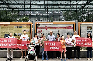 | 吴五清传道(中)与教会会友上街反堕胎( 照片来自网络) |